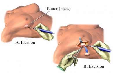 Breast surgical biopsy is when the doctor makes a cut in the breast to remove all or part of a mass. The mass is examined in a lab.